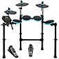 The DM Lite 5-Piece Electronic Drumset features four drum pads and three cymbal pads – each providing authentic feel and indicating notes with an internal blue LED light for a colorful display while in play.