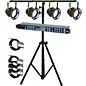 This special American DJ lighting package includes four P64 LED PAR cans, a DMX Duo controller with built-in programs, an LTS-6 light stand, a 25' DMX cable, and 3-10' DMX cables.