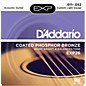 EXP Coated Phosphor Bronze Acoustic Guitar Strings provide longer life and increased durability coupled with the brightness, clarity and sensitivity you've come to expect from D'Addario strings. Here is how it works: An ultrafine layer of EXP coating is bonded to the phosphor bronze wrap wire, which is then wound onto the hex-shaped core wire. The result is a built-in barrier against the corrosion and wear that can quickly sap the life out of your strings and your sound. And since the EXP coating is cross-linked to the wrap wire prior to winding, the strings sound fresh and bright. New-string tone lasts 3 to 4 times longer than traditional guitar strings.
