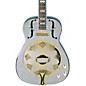 The Dean Chrome G Acoustic-Electric Resonator Guitar has an ornate engraved chrome body with a mahogany neck, "F" soundholes, and a traditional slotted headstock. The rosewood fingerboard displays large split block inlays. Grover tuners make it a cinch to get in tune and stay there.