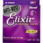 Elixir Strings Anti-Rust light gauge bronze strings for acoustic guitar have the feel and sound of traditional strings, but last up to five times longer than ordinary guitar strings without corroding or losing their tone. Elixir strings have a Polyweb coating to protect the string and allow guitarists alike to enjoy the fresh feel and great tone of new strings far longer than with any other brand of strings.