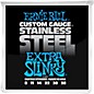 Ernie Ball 2249 custom gauge Extra Slinky Electric Guitar Strings are made from stainless steel wire wrapped around tin-plated, hex-shaped steel core wire. Provides brighter sound and extra string life.