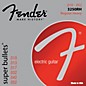 Fender's Super Bullets Nickel-Plated Steel (NPS) strings combine the high output and dynamic sound of steel with the smooth feel of nickel. The 3250RH guitar strings are perfect for rock and other styles of music where the guitar needs to cut through. Fender's patented bullet-end creates a sonic coupling between the string and bridge block, for rock-solid tuning, stability, and increased sustain.
