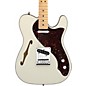 The American Deluxe Telecaster Thinline is an elegantly appointed and versatile-voiced beauty, with a comfortably light semi-hollow ash body, single f hole and tortoiseshell binding (white binding on Three-color Sunburst model). Its one-piece maple neck has a “modern C” profile, satin finish and Bi-Flex™ truss rod, while the fast compound-radius (9.5”-14”) maple fingerboard has 22 medium jumbo frets. Other premium features include dual N3 Noiseless™ single-coil Telecaster pickups with three-way switching, S-1™ switch for series wiring in middle pickup position, four-ply tortoiseshell pickguard (white pearl pickguard on Three-color Sunburst model), two knurled chrome control knobs (master volume and tone), comfortable contoured neck heel, staggered locking tuners, locking strap buttons and four-bolt neck plate with Micro-Tilt™ adjustment mechanism. Hard-shell case, leather strap and 10’ cable included.