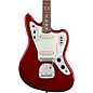 The Fender Classic Player Jaguar Special is an electric guitar that updates Fender's iconic Jaguar guitar with some thoroughly modern improvements: hotter pickups, a redesigned Adjusto-Matic bridge with floating tremolo tailpiece, a 9-1/2" fingerboard radius and a redesigned neck pocket with increased back-angle for improved stability and sustain. The Jaguar guitar's tremolo plate has been moved closer to the bridge to increase break angle and sustain. The Fender Classic Player Jaguar Special guitar has a screw-in tremolo arm that increases stability and control when executing dive-bombs.