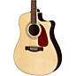 The Fender DG220SCE acoustic electric guitar has 20 frets, 25.3" scale, nato neck, with a rosewood fingerboard and bridge, and a compensated saddle. The finish is natural gloss polyurethane. The body starts with a Fender dreadnought style for full, balanced tone. It features X-bracing, dot position inlays, and a Gold silkscreened Fender logo.