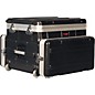 The Gator GRC-Studio4Go-W Laptop or Mixer Rack Case features rugged military-grade polyethylene construction, 4U of rack rail for rackmount recording devices and disk drive, an adjustable laptop compartment with no-slip web strap tie-downs and a convoluted foam interior in the lid. An access hole between top and bottom compartments allows the laptop to be permanently connected to the recording gear. Retractable handle and wheels.