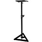 The practical, height-adjustable Gear One SMS-6000 near-field monitor speaker stand has a stable triangular base with leveling floor spikes. The heavy-duty vertical shaft is height-adjustable from 36-1/2" to 54" and has safety pin holes for added security. Welded steel construction. 9-1/2" square platform, 18" base spread. 90 lb. capacity.