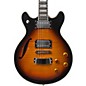 The Hagstrom Deuce F Electric Guitar offers ultimate fret access, complete tone control and an elegant look with its single f-hole. The mahogany body has a carved maple top and a set mahogany neck for improved sustain. The neck has a radius of 15" and features a composite material called "Resonator" for the fingerboard, which improves on the feel and tone of ebony. Dual Hagstrom Custom 58 pickups are wired to a 3-way switch on the upper bout with 2 Volume controls and 2 Push/Pull Tone knobs to engage coil splits. A tune-o-matic bridge and special Hagstrom die-cast tuners keep things perfectly intonated.