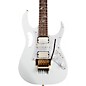 The Ibanez JEM7V Steve Vai Signature Electric Guitar is a top-of-the-line 6-string solidbody capable of exploring the most extreme sonic territories at any speed. The 5-piece maple/walnut neck is super-smooth for easy riffing and incredibly strong and stable with a lead-friendly thin and flat profile. A 25-1/2" scale and bolt-on neck joint get you lots of bass and treble response with a quick, precise attack. A 43mm nut provides comfortable string spacing and 24 jumbo frets deliver greater range while the recessed tremolo provides right-hand playing comfort and allows notes to be radically raised as well as lowered. The alder body produces clear, full-bodied vintage tone that serves all your needs from chunky rhythms to searing leads. A trio of screaming DiMarzio Evolution pickups (humbuckers at the neck and bridge with a custom single-coil in the mid position), coupled with Split-5 wiring give you all the tonal diversity you crave. And of course, there's Vai's signature Monkey Grip on the bass-side body wing. Includes case.