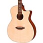 The Gypsy Flame is a grand auditorium sized instrument that features a spruce top with gorgeous flamed maple graphics. Luna's signature crescent moon logo, inlaid in mother-of-pearl, shines brightly from the gently curved matching headstock.