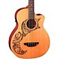 This instrument is tattooed by laser etching against a select cedar top, offering a warm look with equally warm tones.