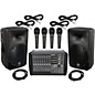 A complete system with 8-channel mixer/amp with 10" passive speakers, 4 mics, and cables.