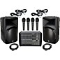 A complete system with 8-channel mixer/amp with 12" passive speakers, 4 mics, and cables.