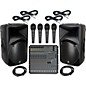 A complete system with 10-channel mixer/amp with 12” passive speakers, 4 mics, and cables.