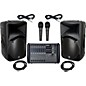 A complete system with an 8-channel 1000 Watt mixer, 12" speakers, 2 mics, and cables.