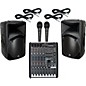 A complete system with 12-channel mixer, 2-way speakers, 2 mics, and cables.