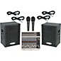 The Peavey PV 14/Harbinger APS12 PA Package includes the Peavey PV14 mixer with 10 mono/2 stereo channels and effects; Kustom KPC15P 15", 100W powered loudspeakers; 2 Audio-Technica M4000s dynamic mics; and 4 mic cables.