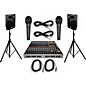 A 12" powered mixer with 15" speakers, mics, cables, and stands.