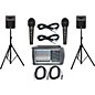 A portable 8-channel powered mixer, 10" PAs, 2 dynamic mics, plus cables and speaker stands.