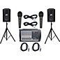 This live sound kit includes Peavey’s XR 8600D powered mixer (SKU#423980), a pair of Peavey PV 15 loudspeakers (SKU#601389), 2 Audio-Technca M4000S handheld dynamic microphones (SKU#271310), a pair of 20’ Gear One XLR cables (SKU#339877), 2 25' Gear One Speakon to 1/4" speaker cables (SKU#339879), and 2 Musician's Gear All-Steel Tripod Speaker Stands (see SKU#J01627).