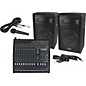 This package includes the following PA equipment: Phonic Powerpod 1860 powered mixer with 400W stereo power, 8 mic/line mono channels, 2 stereo channels, and 16 onboard 32/40-bit DFX; 2 S715 15" 2-way speakers; and a microphone with cables.