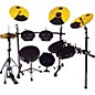 In addition to a full-size, dual-zone 14" snare, this setup includes two 10″ ConcertCast toms and two dual-zone 12″ ConcertCast toms; both with Reaction Series mesh heads and rim triggers. Cymbals feature a full-motion 13″ Visu-Lite hi-hats with stand, two full motion 16″ Visu-Lite crashes with choke, one full motion 18″ ride with bell, bow, and zdge zones. A road-worthy all steel rack with three piece legs and cymbal booms.