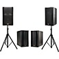 This kit includes 2 QSC K12 Powered speakers with 2 QSC Ksub Powered Subwoofer and 2 Musician's Gear All-Steel Tripod Speaker Stands.