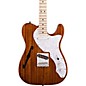 The semi-hollow Squier Classic Vibe Telecaster Thinline Electric Guitar boasts a rich natural-finish mahogany body with an acoustic chamber f-hole and an attractive white pearloid pickguard. The Thinline Tele's gloss maple neck sports 21 medium-jumbo frets and a modern, flatter 9.5" radius. Other appointments include vintage style tuners and a 3-saddle bridge. The guitar's custom Alnico V single-coil pickups provide warmth and clarity and enough punch for country, blues, rock and jazz.