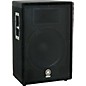 The Yamaha A15 speaker from the A Series is designed for live PA system use. It is a 2-way speaker featuring bass reflex, trapezoidal cab design, heavy grille, recessed side handles, and black carpet covering.